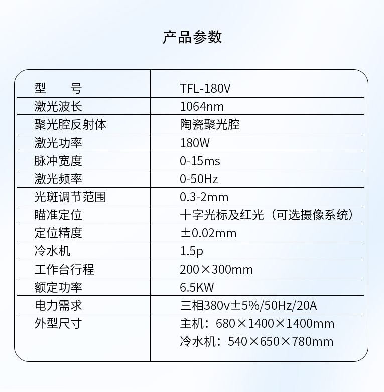 3、激光腔采用漫反射陶瓷反射腔,激光轉(zhuǎn)換效率高。