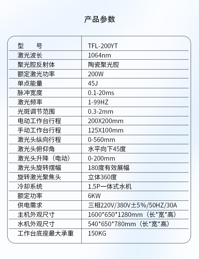 通發激光一體式模具激光焊機TFL-200YT/TFL-400YT是一款多種功能融合一體的新型模具激光焊接機,針對特大型塑料模具激光焊、中型注塑模具激光燒焊、小型塑膠模具激光補焊、壓鑄模激光補焊具等各類模具可實現超精密修復,幫您解決大型汽車模具修復難題,不需要模具移動,電動工作臺與立體旋轉激光頭完美結合,操作桿控制運動移動實現輕松激光修復大型模具,同時也保留了傳統手動工作臺超精密修復模具功能。