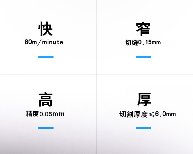 適用范圍廣,可加工銅、鋁、不銹鋼、鐵、pcb板、磁性材料等多鐘材料。幅面大小可選,長度可根據用戶加工需求定制。切割速度快,效果光滑平整,切口沒有機械應力,光滑平整無剪切毛刺。
